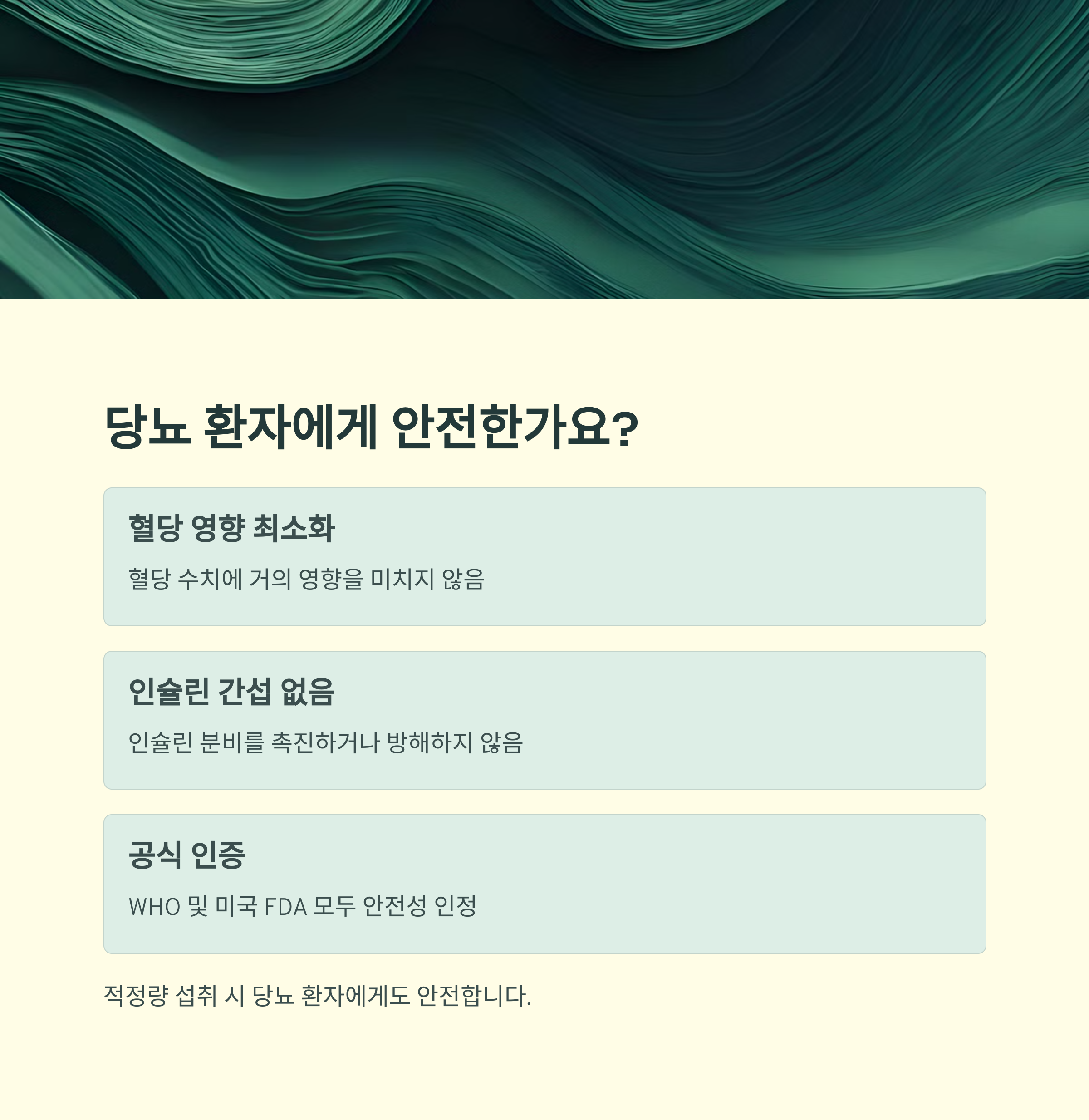 "천연 유래 스테비아와 에리스리톨이 가장 안전성이 높다고 평가받습니다."
