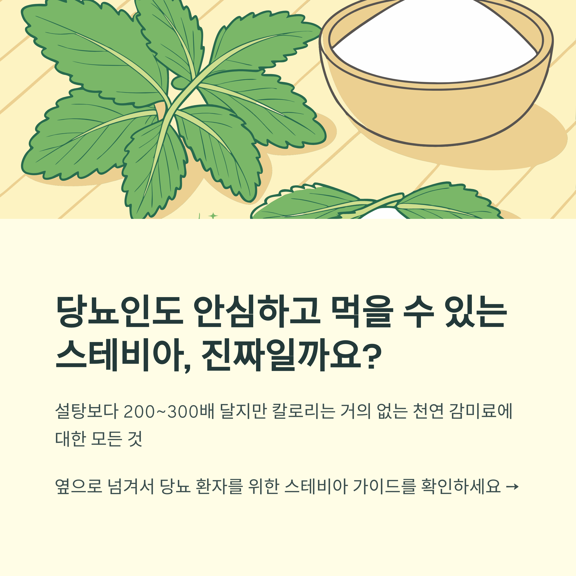 "스테비아를 이용하면 단맛은 즐기면서도 혈당 걱정을 덜 수 있습니다."