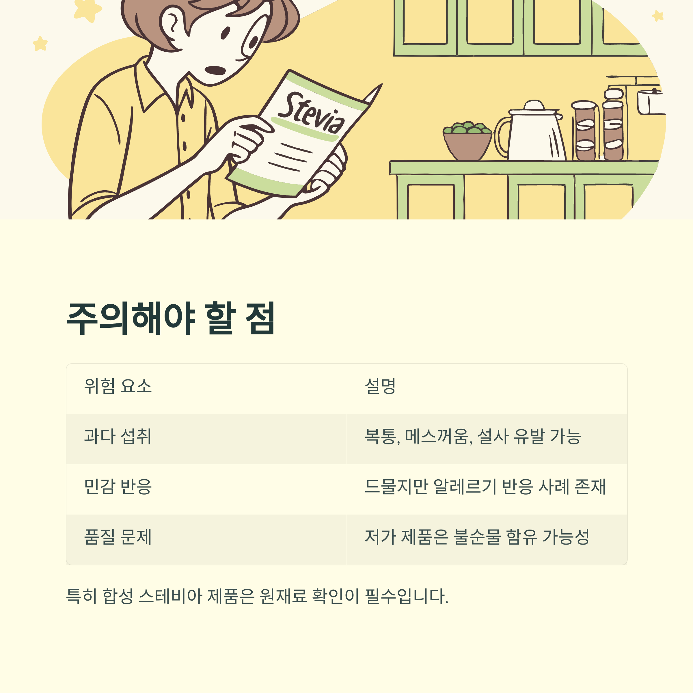 "특히 합성 스테비아 제품은 원재료 확인이 필수입니다."
