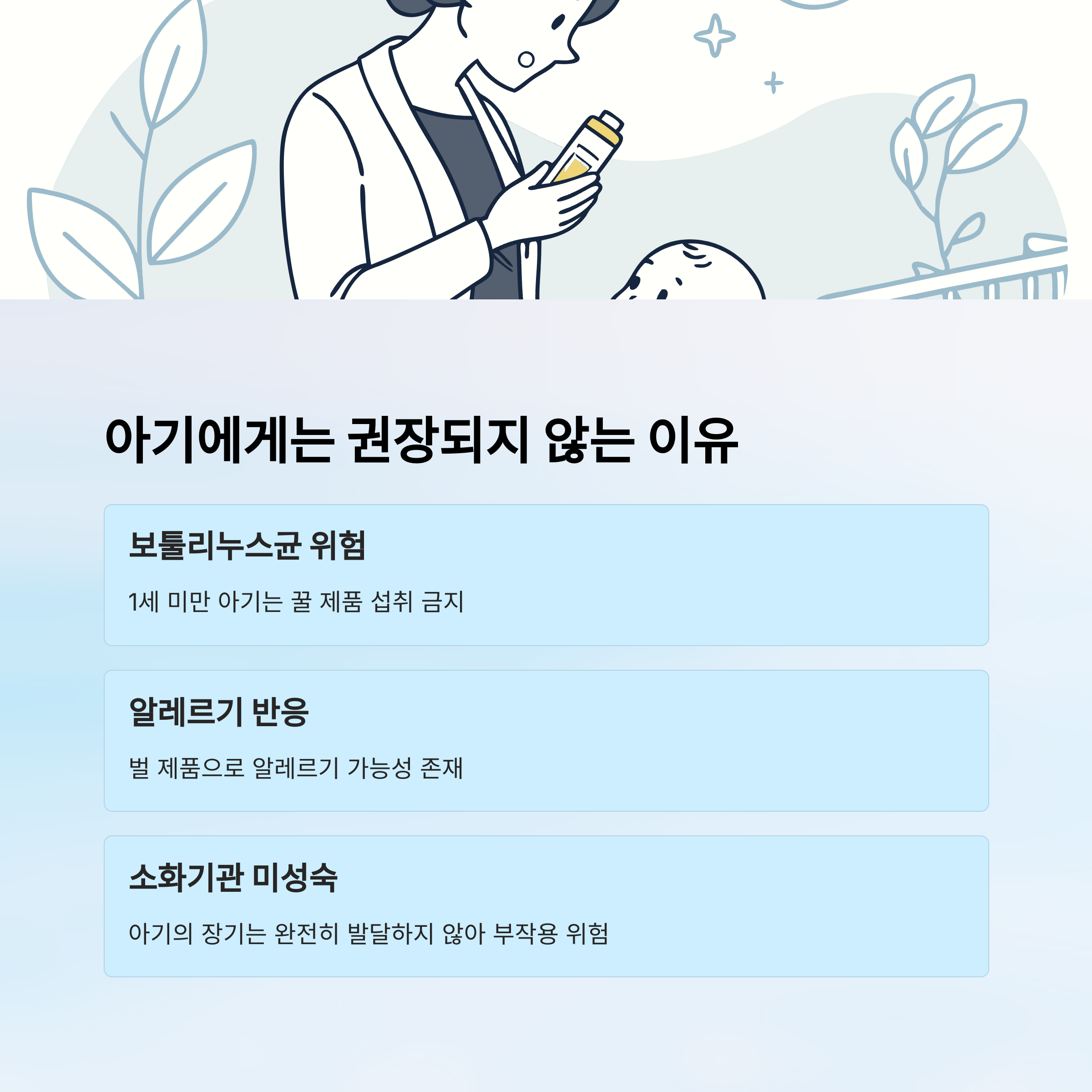• 1세 미만 아기는 꿀조차 섭취 금지 (보툴리누스균 위험)