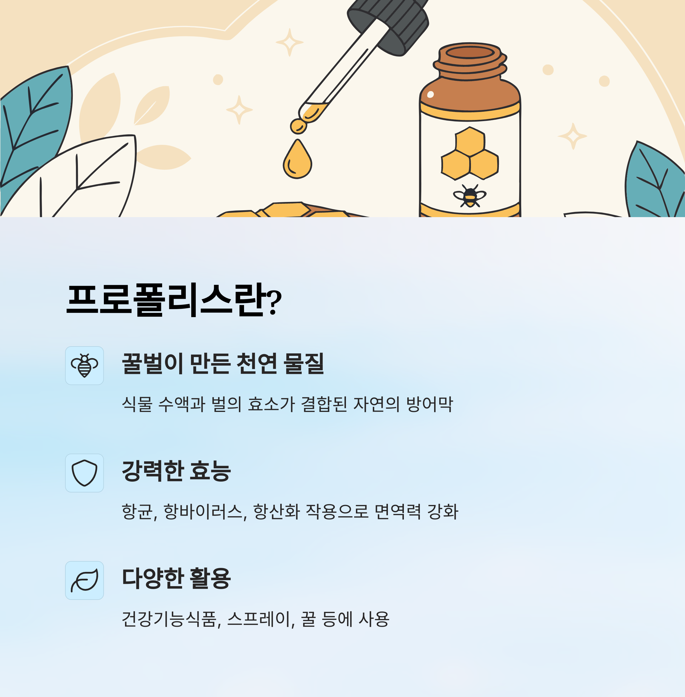 • 프로폴리스도 벌 제품이라 알레르기 반응 가능성 있음
