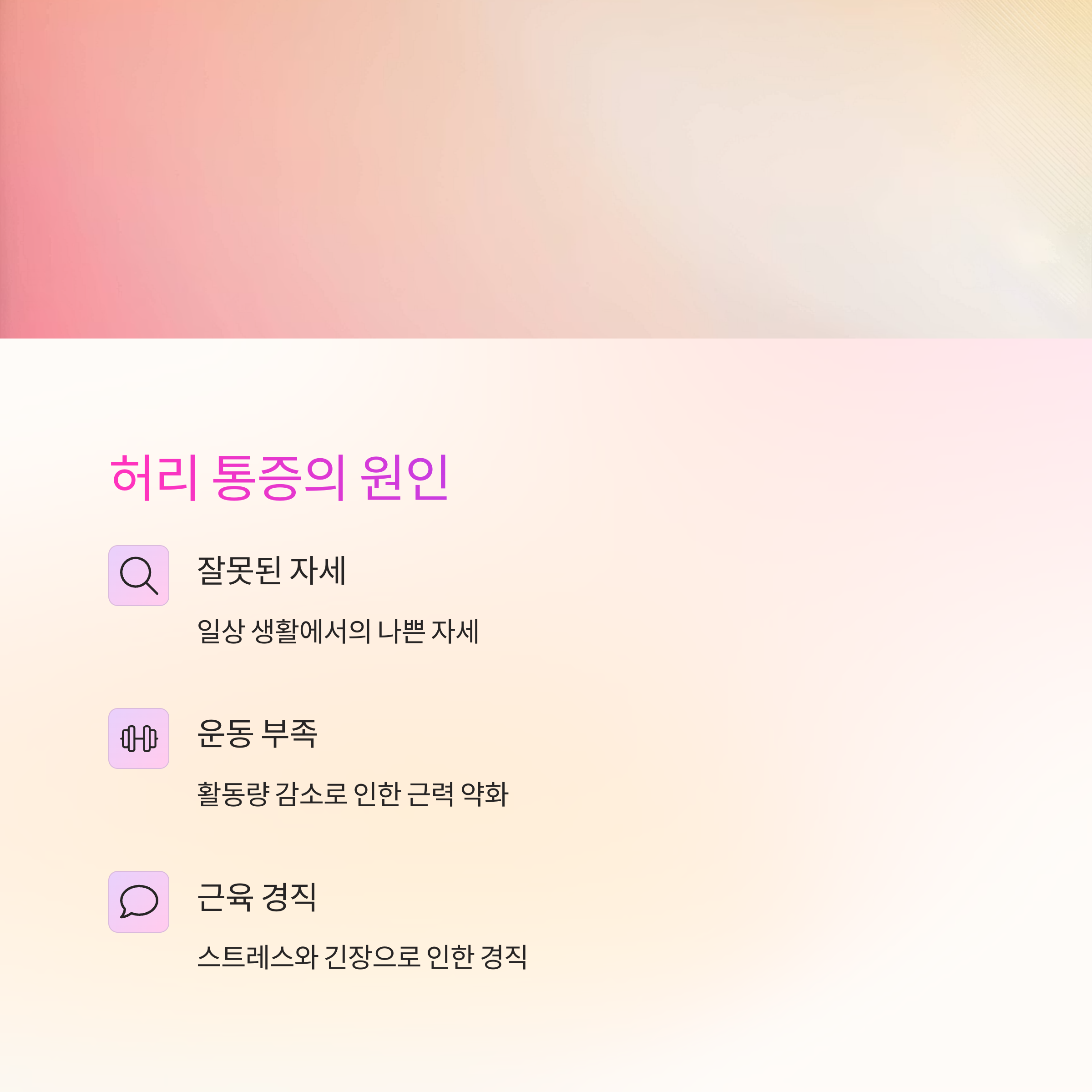 허리통증은 잘못된 자세, 운동 부족, 근육 경직 등 다양한 원인으로 발생할 수 있습니다.