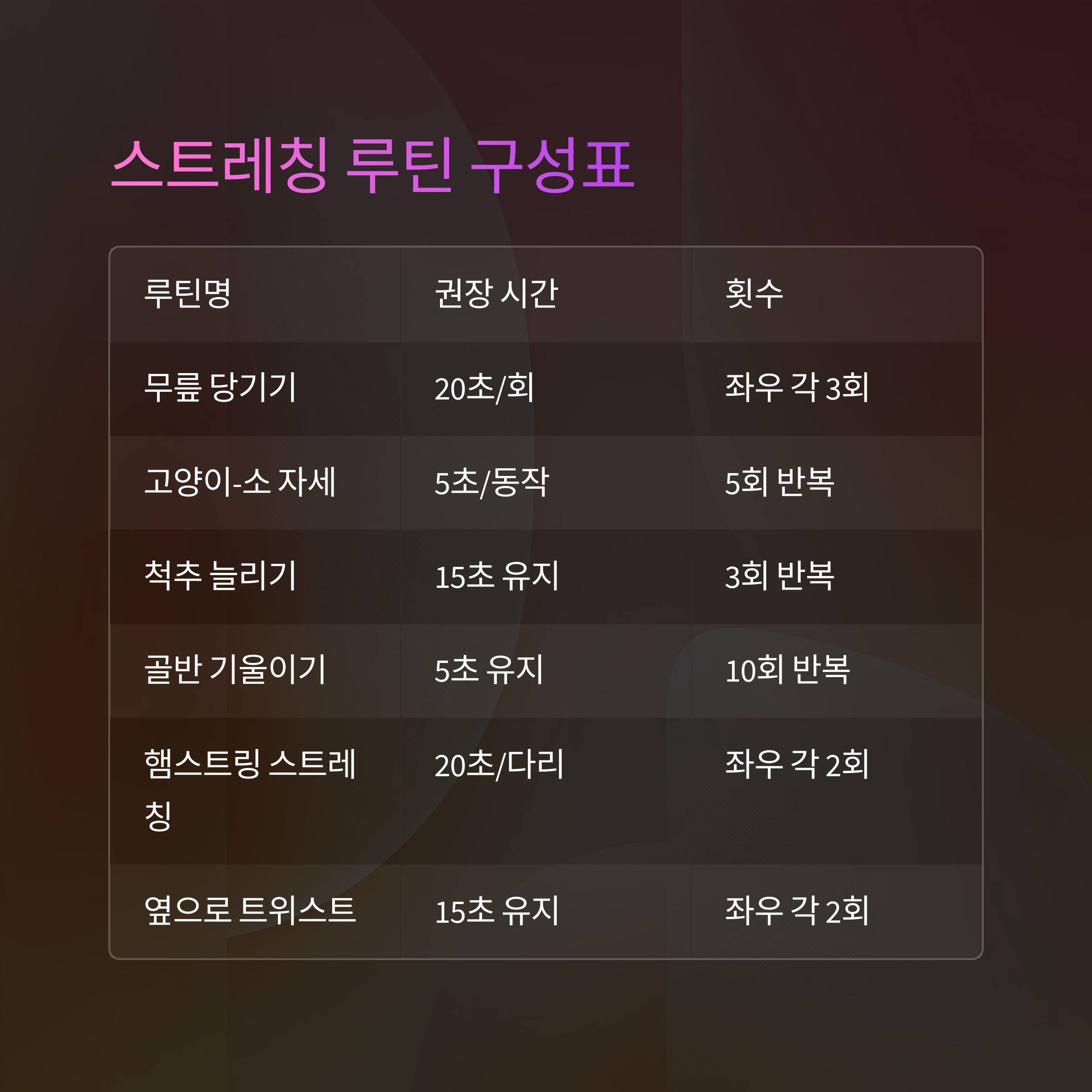 스트레칭 루틴 구성표