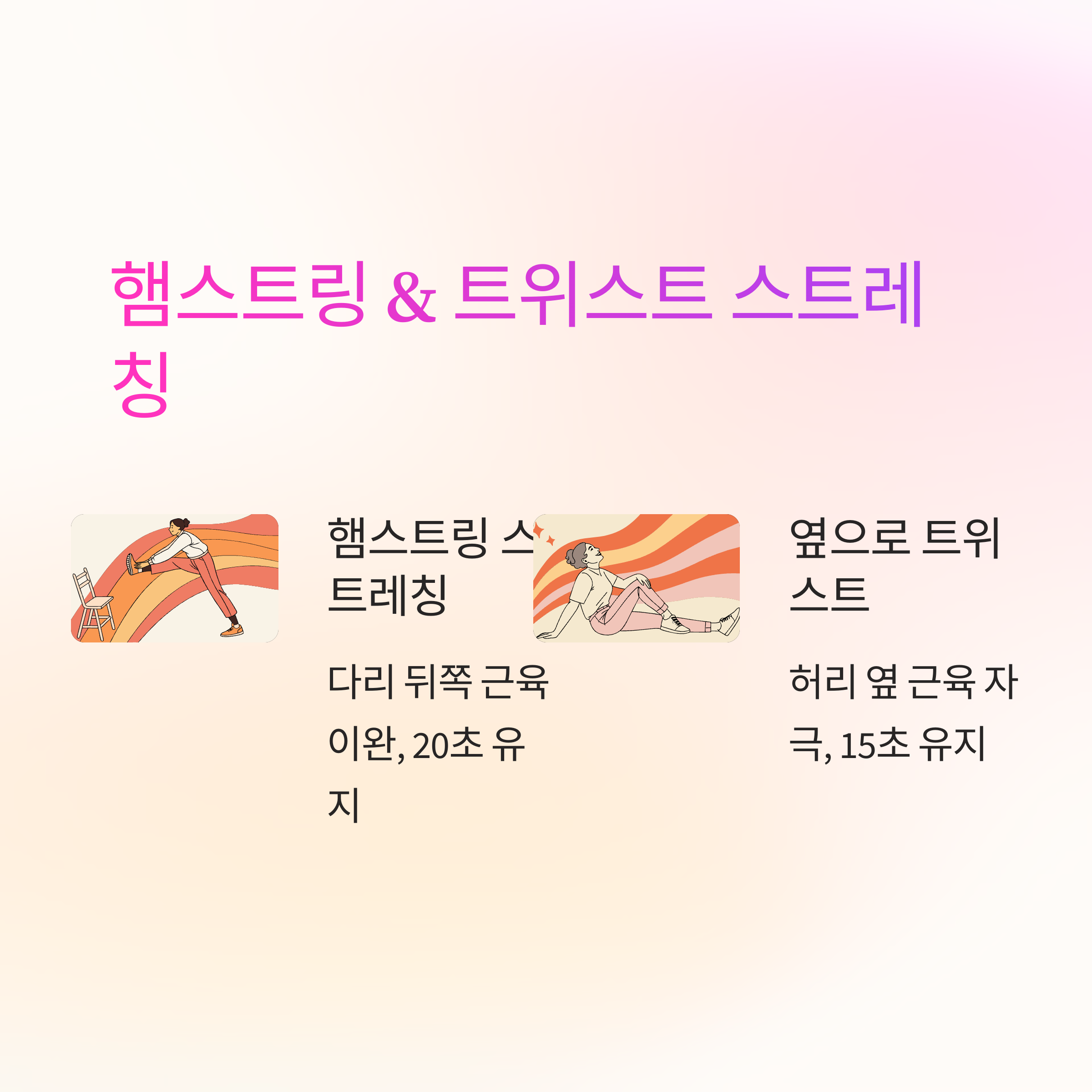 | 햄스트링 스트레칭 | 20초/다리 | 좌우 각 2회 |