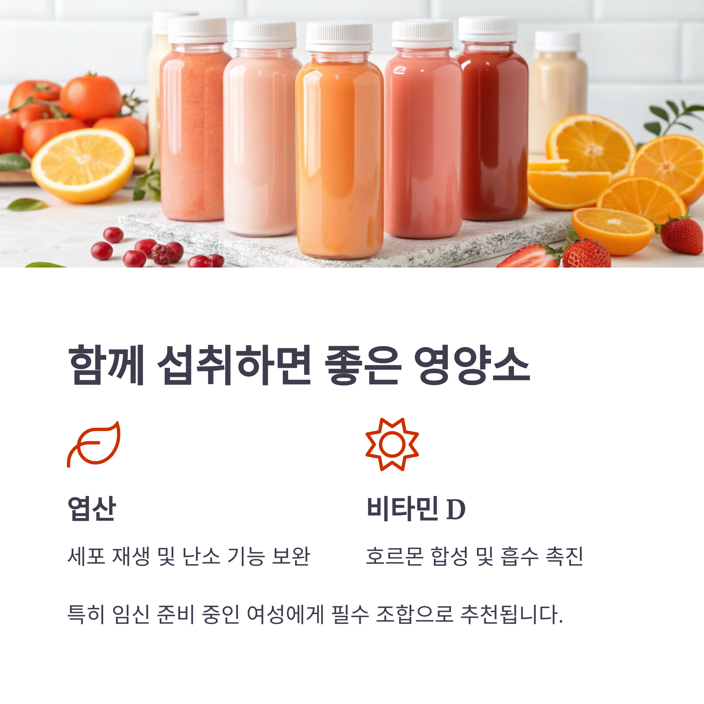 특히 임신 준비 중 여성에게는 필수 조합으로 추천됩니다.