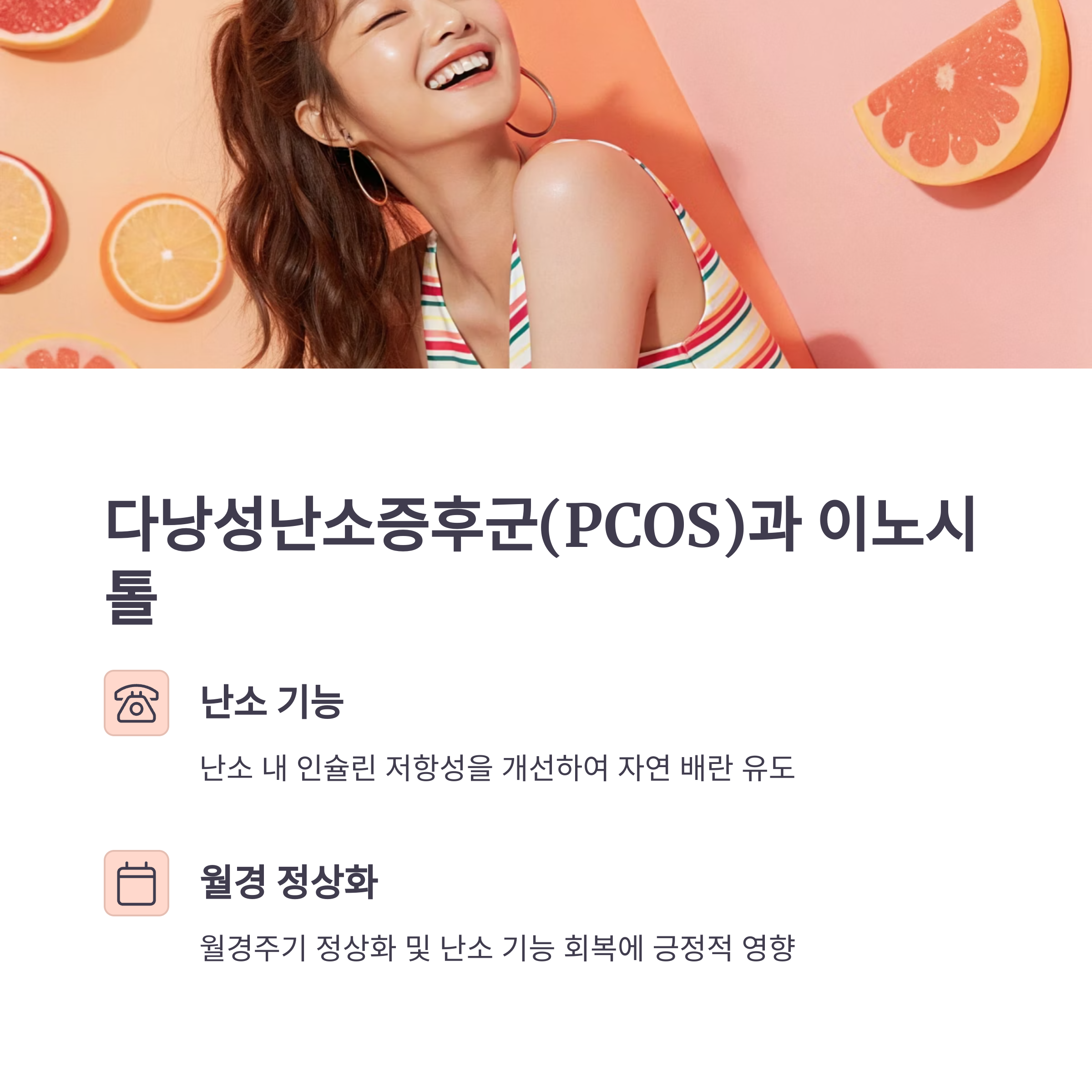 여러 연구에서 이노시톨 섭취가 월경주기 정상화 및 난소 기능 회복에 긍정적인 영향을 준 것으로 나타났습니다.