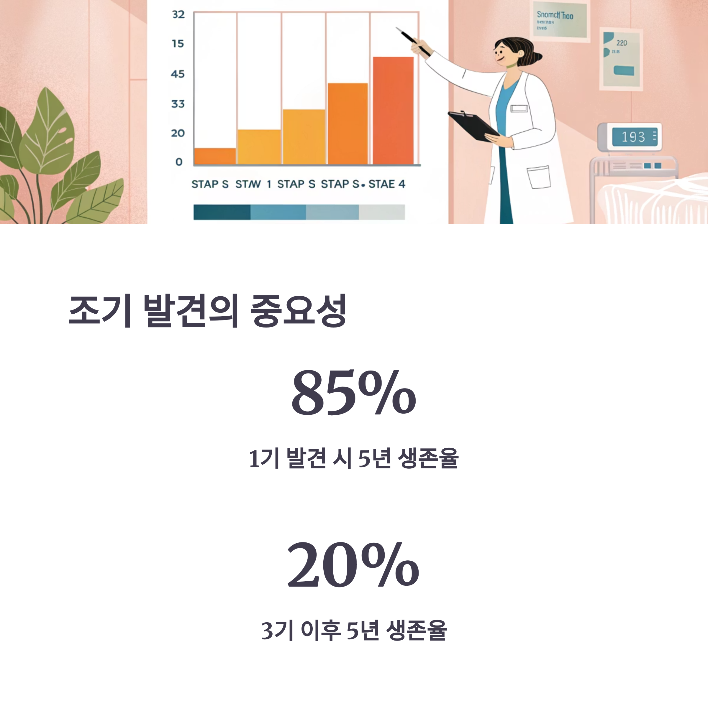통계에 따르면 **식도암 1기 발견 시 5년 생존율은 약 85%**에 달합니다.