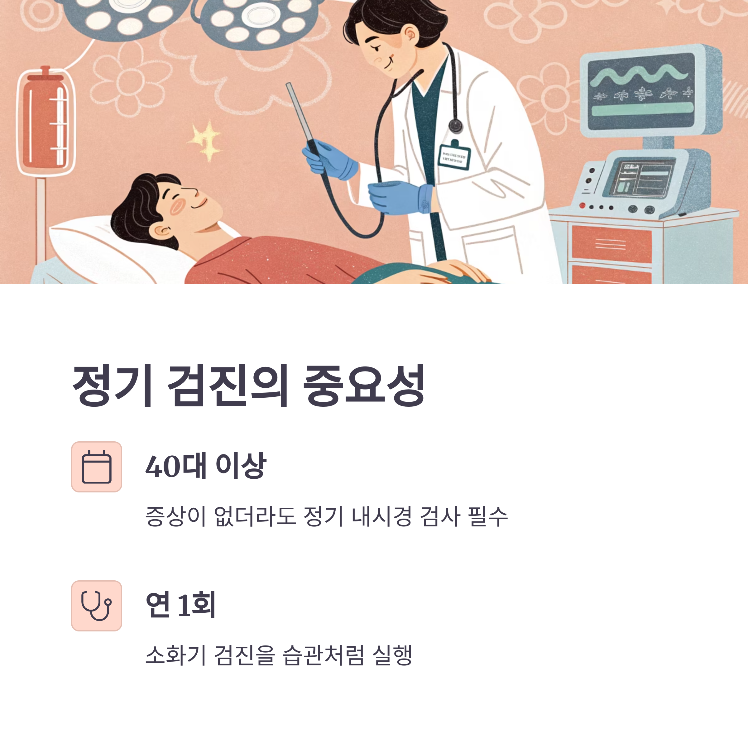 특히 40대 이상이라면 늦기 전에 내시경 검사부터 받아보는 것이 최선입니다.