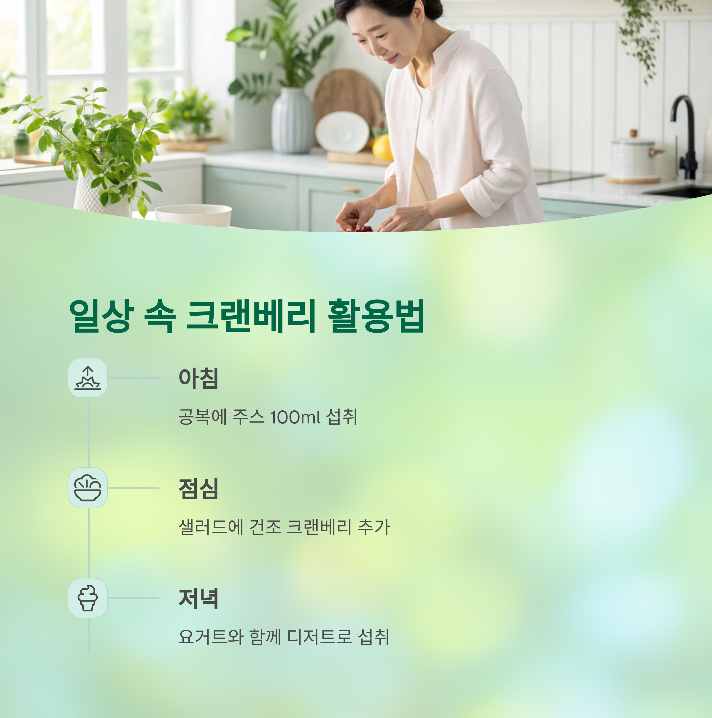 짧은 하루 루틴 속에서도 크랜베리는 쉽게 섭취할 수 있습니다.