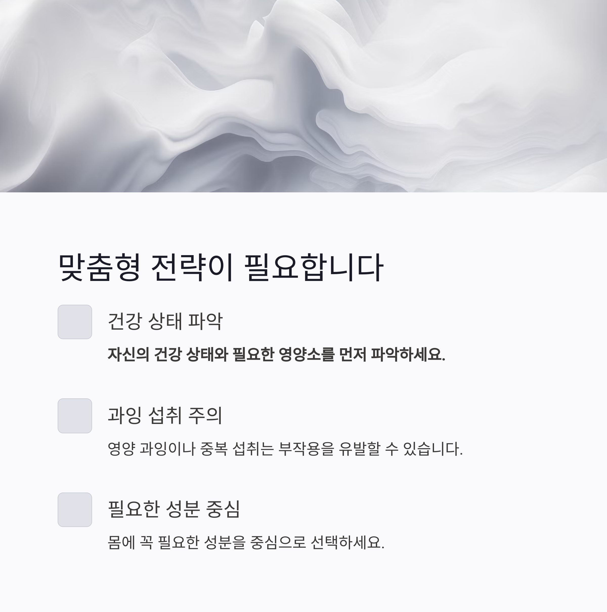 몸에 꼭 필요한 성분을 중심으로 선택하는 맞춤형 전략이 필요합니다.