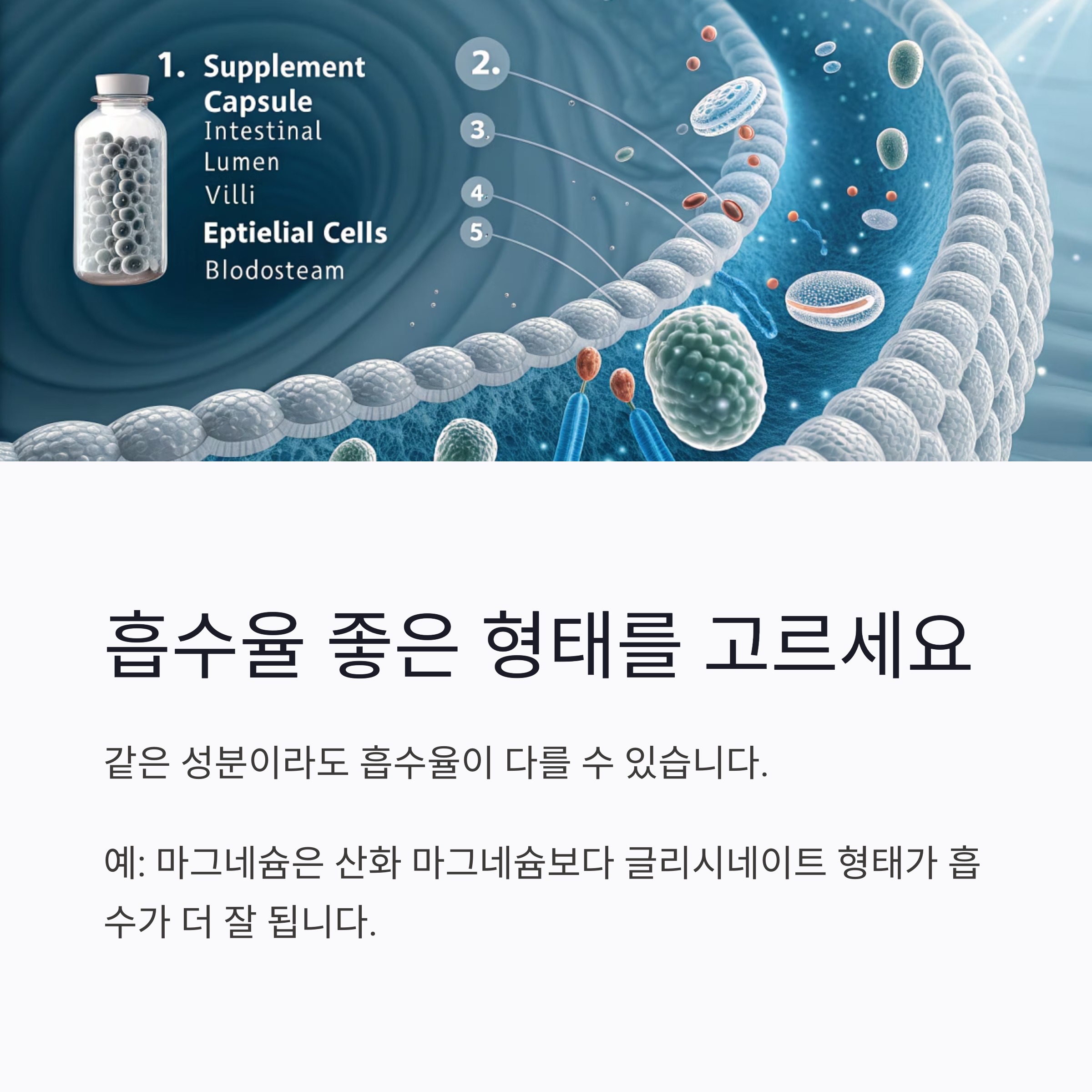 건강보조제는 같은 성분이라도 흡수율이 다를 수 있습니다.