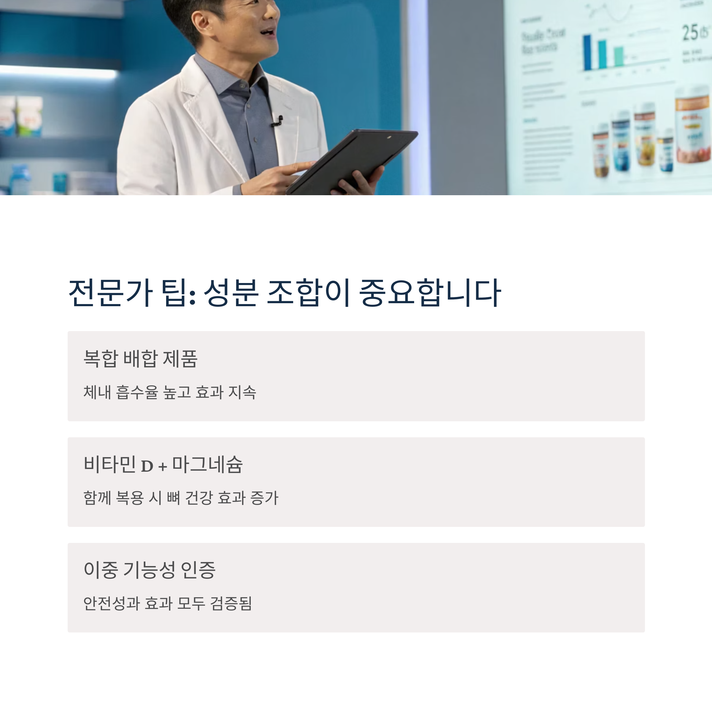 **복합 배합 제품일수록 체내 흡수율이 높고 효과가 오래 간다"고 설명합니다.