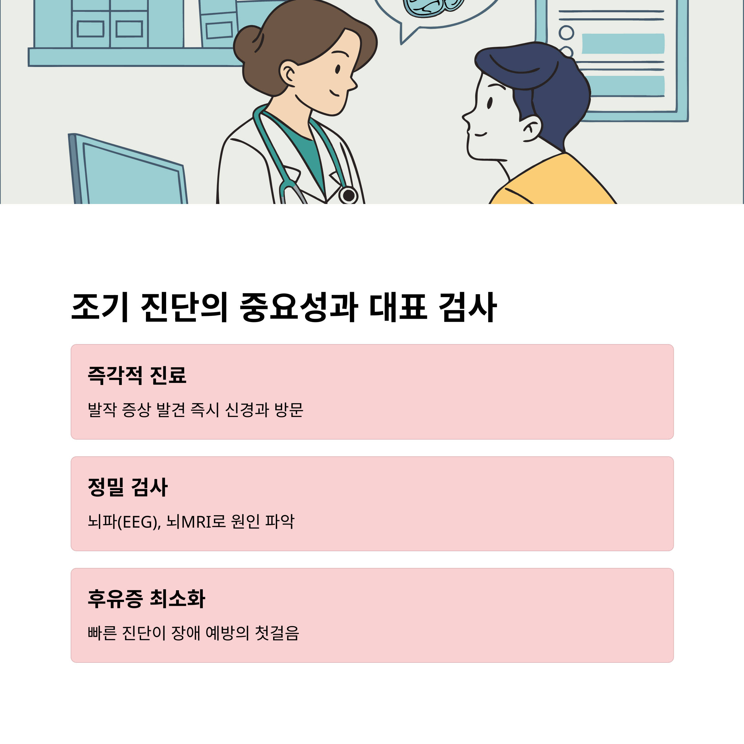 최대한 빠르게 진단을 받고 발작의 빈도와 유형에 따라 맞춤 치료가 진행되어야 합니다.