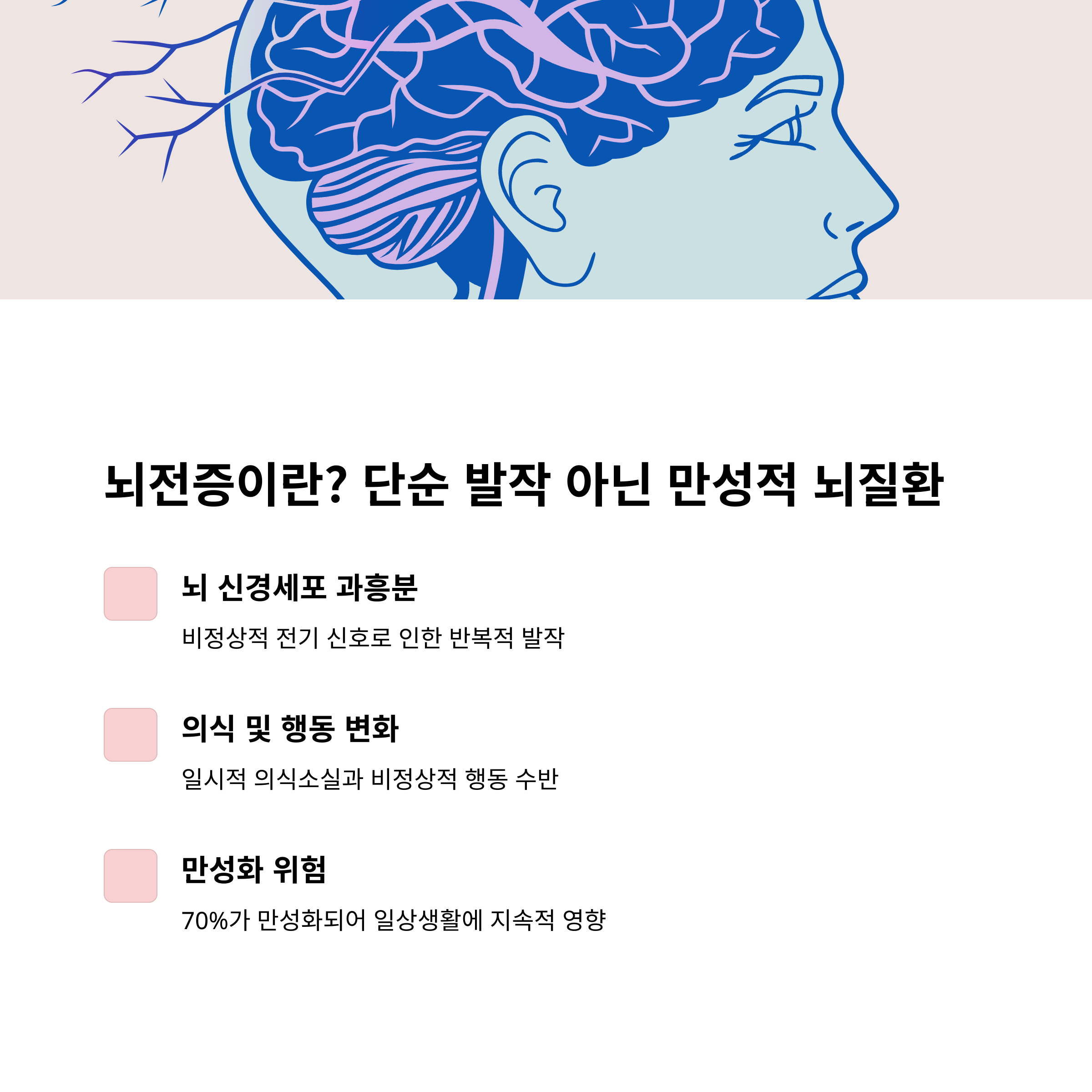 치료 없이 방치하면 뇌전증은 단순한 발작이 아닌 신체, 정신, 사회적 장애로 확대될 수 있습니다.