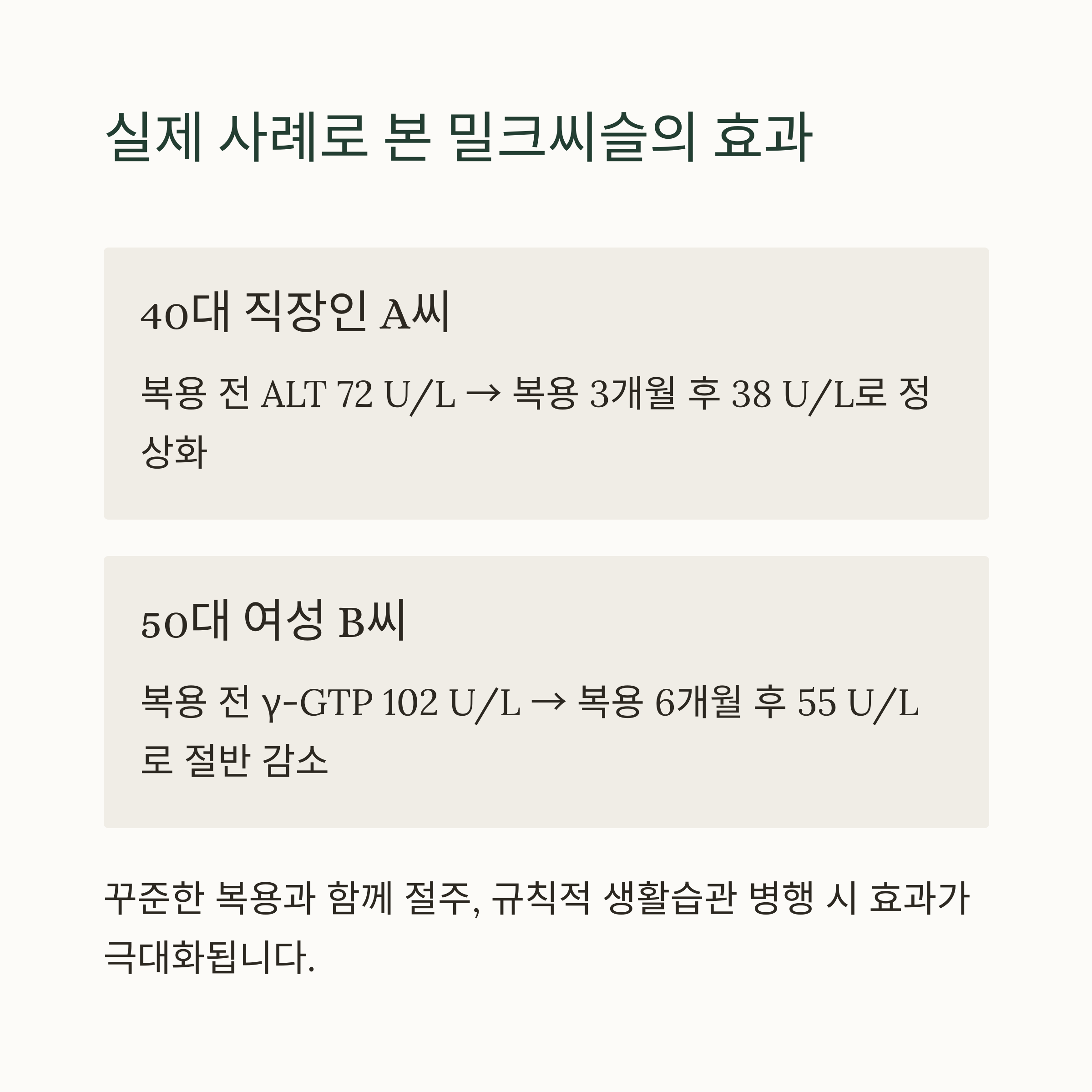 밀크씨슬 복용으로 수치 개선된 실제 사례